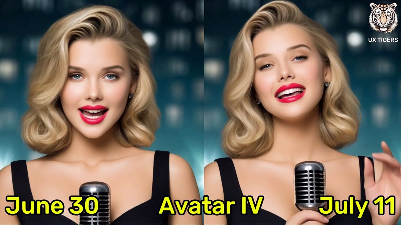 Comparing Avatar IV lip-synch animations made less than two weeks apart.