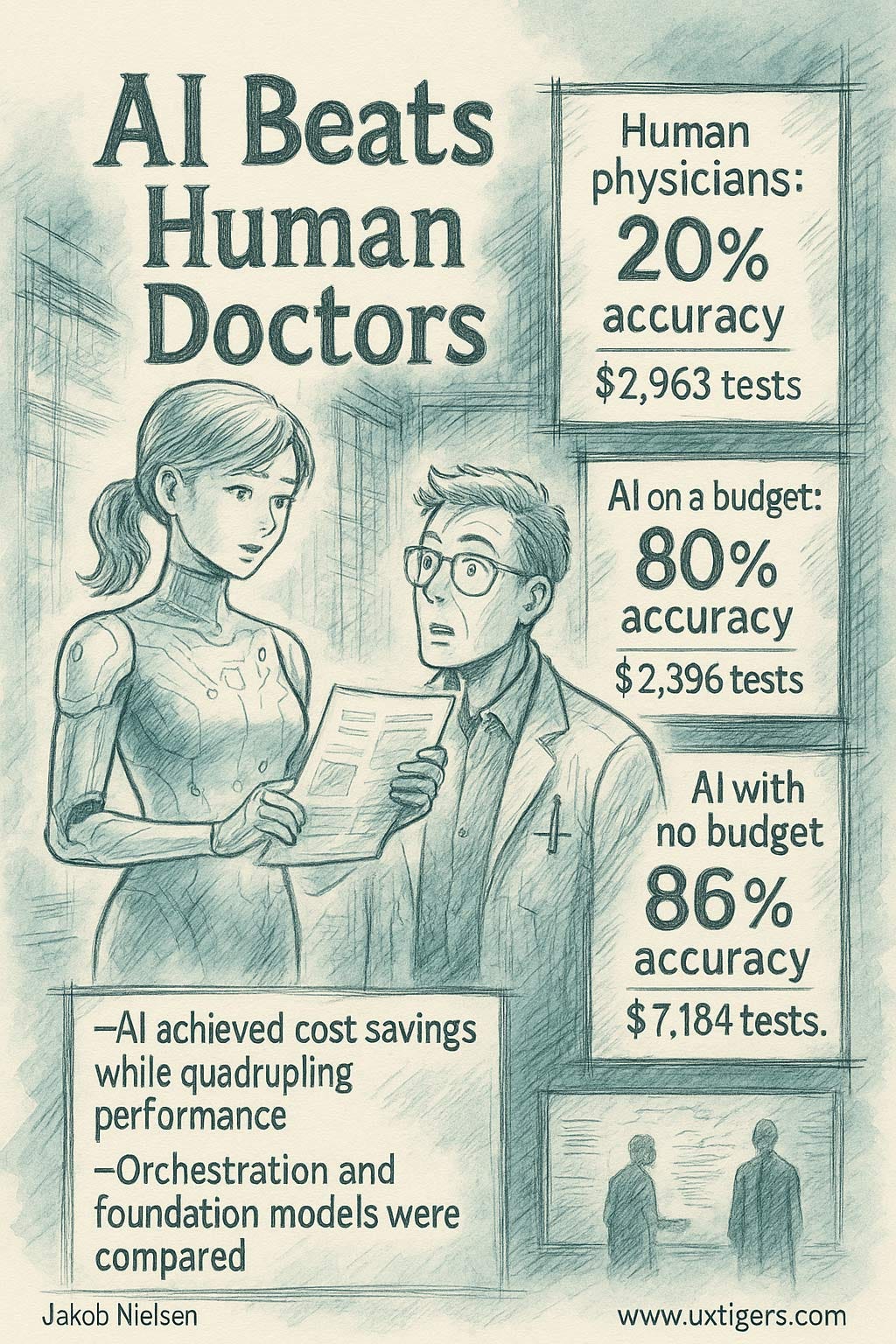 Human physicians: 20% diagnostic accuracy while spending an average of $2,963 on tests.