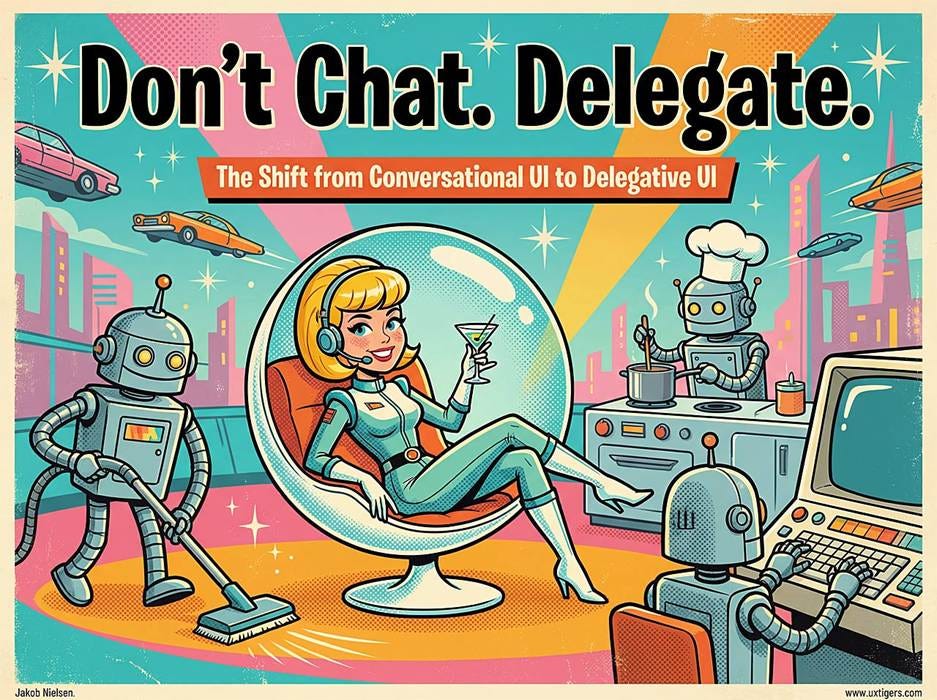 2026, however, does seem likely to become the year of AI agents. Artificial Intelligence will evolve from passive tools (chat UI that waits for a prompt) to active Agentic Systems (software that plans, executes, and iterates on tasks autonomously). In UX terms, this is a fundamental shift in interaction design from Conversational UI (asking an AI a question) to Delegative UI (assigning an AI a goal).