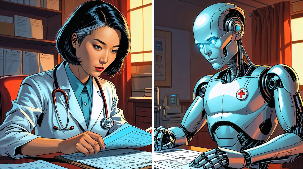 Many studies now show that AI does better than human doctors when diagnosing patients from clinical data. The question is not whether AI is perfect (it’s not), but how it performs relative to humans. (Leonardo)