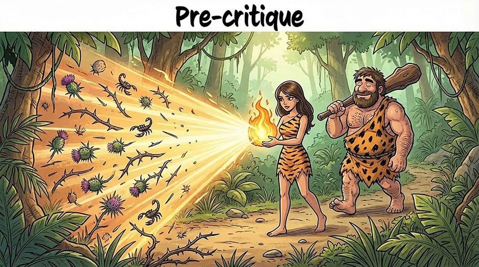 The meta-critique analyzes outcomes across many individual design critique sessions, similar to the way my cave-age characters consider what went wrong across many hunts. (NotebookLM)