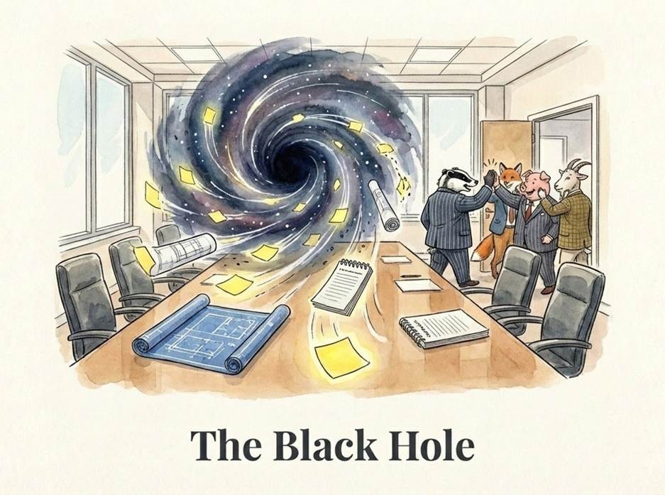 Why it happens: The presenter is too busy presenting, answering questions, and managing the room to take detailed notes, and everyone else assumes someone else is doing it. Important points seem obvious and memorable. They are not. Memory compresses nuance, and what felt shared in the room quickly fragments into different interpretations.