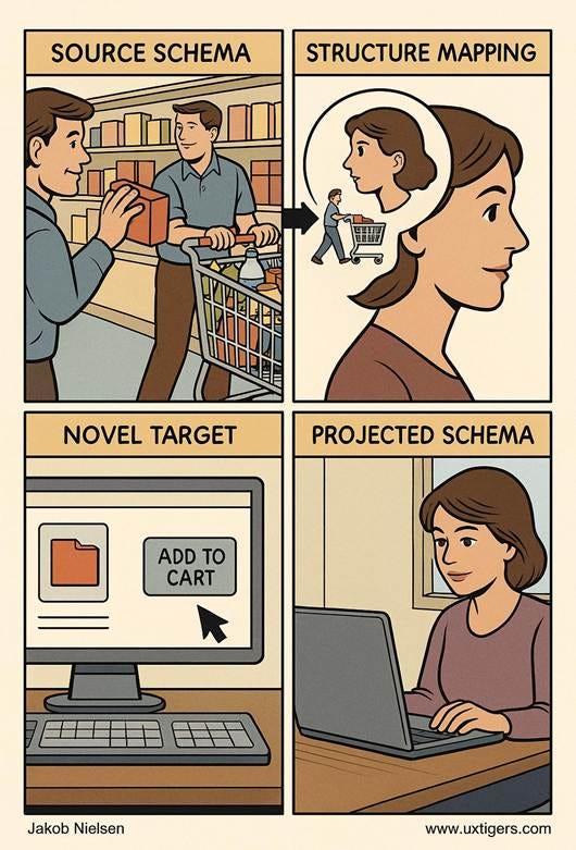 Eventually, successful metaphors fade into convention; that’s a feature. Once learned across products, they pay compound interest: lower teaching cost, stronger information scent, faster first clicks. Don’t burn that capital chasing novelty for its own sake.