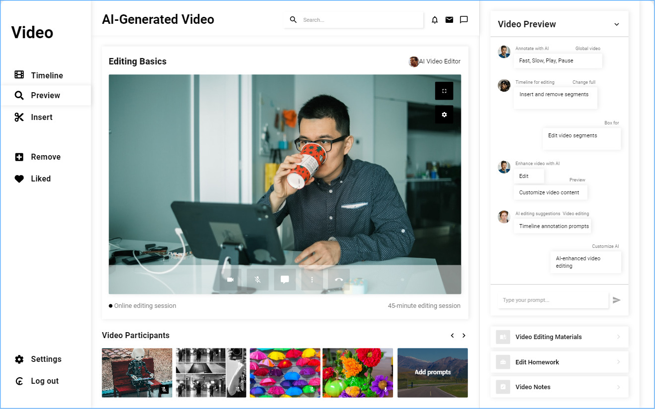 We need to be able to apply new prompts that describe changes we want to be made to an existing object. This could be global changes to the mood of a scene in a video, or it could be a more locally-defined change to a shorter segment. For example, zoom in on the lead character’s face during these 5 seconds.