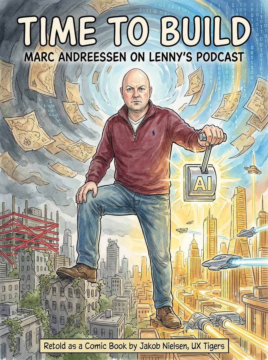 I decided to make the following comic strip about the most interesting things Marc Andreessen said on Lenny’s Podcast, but I encourage you to watch the entire episode, even though it runs almost two hours. Well worth the time.